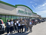 Central Coast members of Lideres Campesinas organized a protest outside the Dollar Tree store in Orcutt, CA as part of the Campaign for Healthier Solutions national week of action calling on dollar store chains to protect their customers from toxic chemicals in the products they sell. “These big companies, they have their a store in the poorest community and the poorest area of the community, they establish their store for colored people, fieldworkers, people who are not able to buy expensive products,” says Rosalba Garcia.
